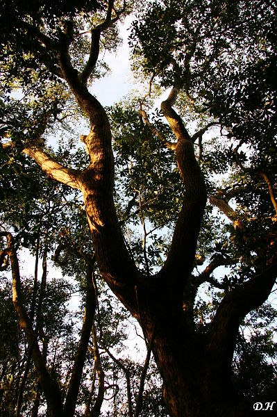 仰拍樹林-斜射光的層次