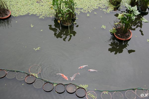 海芋池中錦鯉游泳