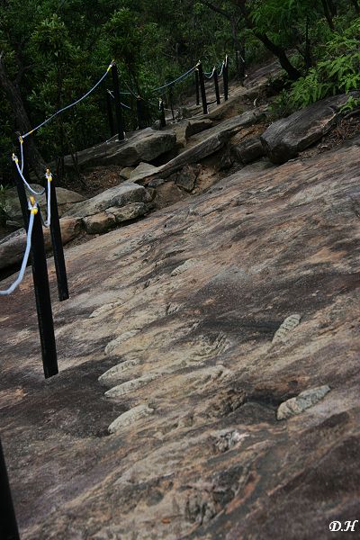 往竹月寺先下大岩壁,岩壁上有鑿痕可踏