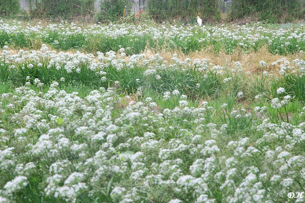 韭菜花田與孤鷺