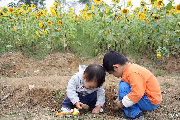 永齡杉林有機農業園區的向日葵花田下的兩小無猜