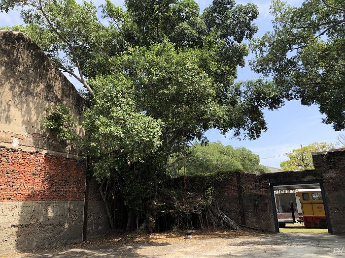 台糖倉庫紅磚牆面與榕樹