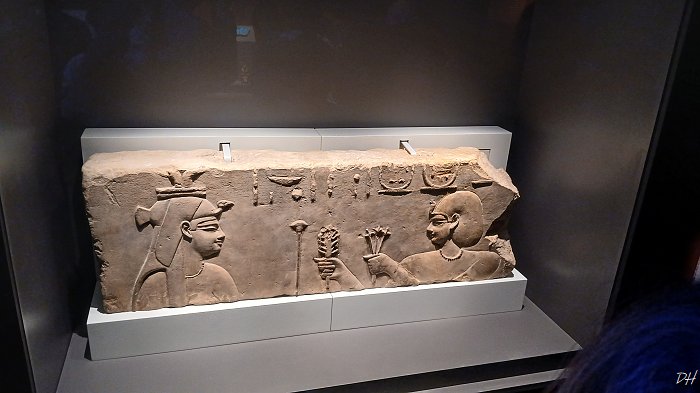 神聖的獻祭:在浮雕中,法老托勒密一世正向掌管歡樂與豐饒的女神哈索爾 (Hathor) 進行獻祭。這象徵法老履行其宗教職責,維持神界的愉悅與人間的繁榮。
